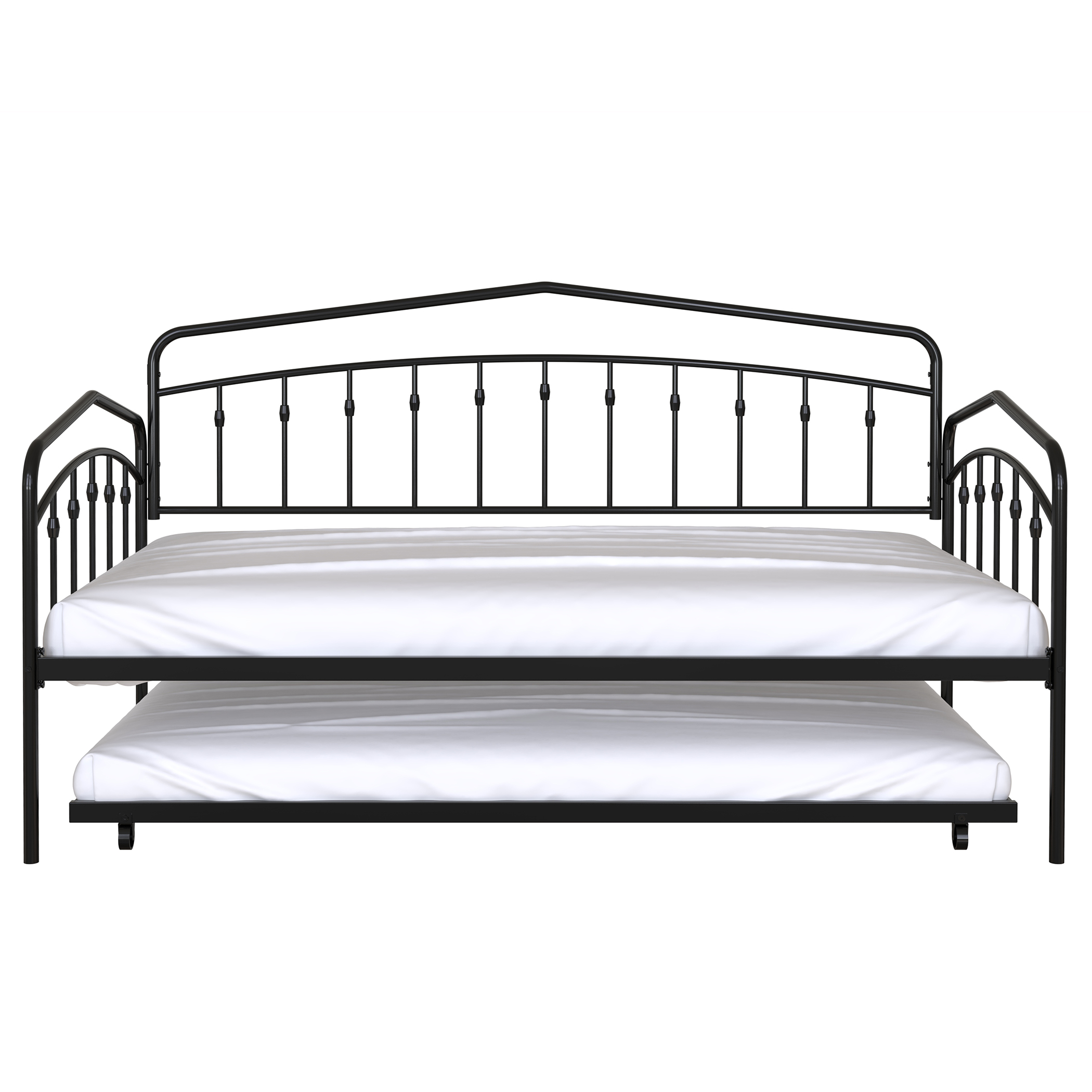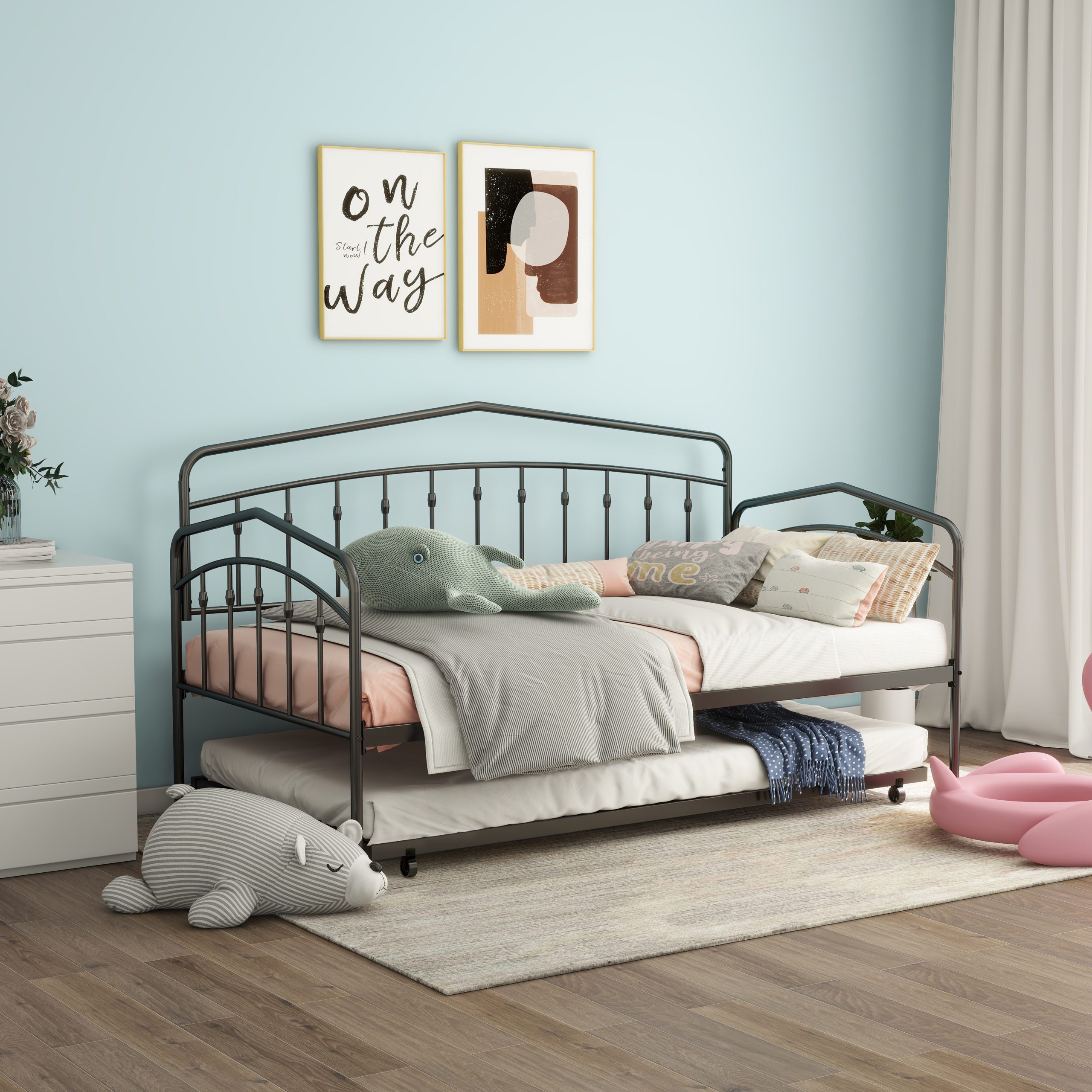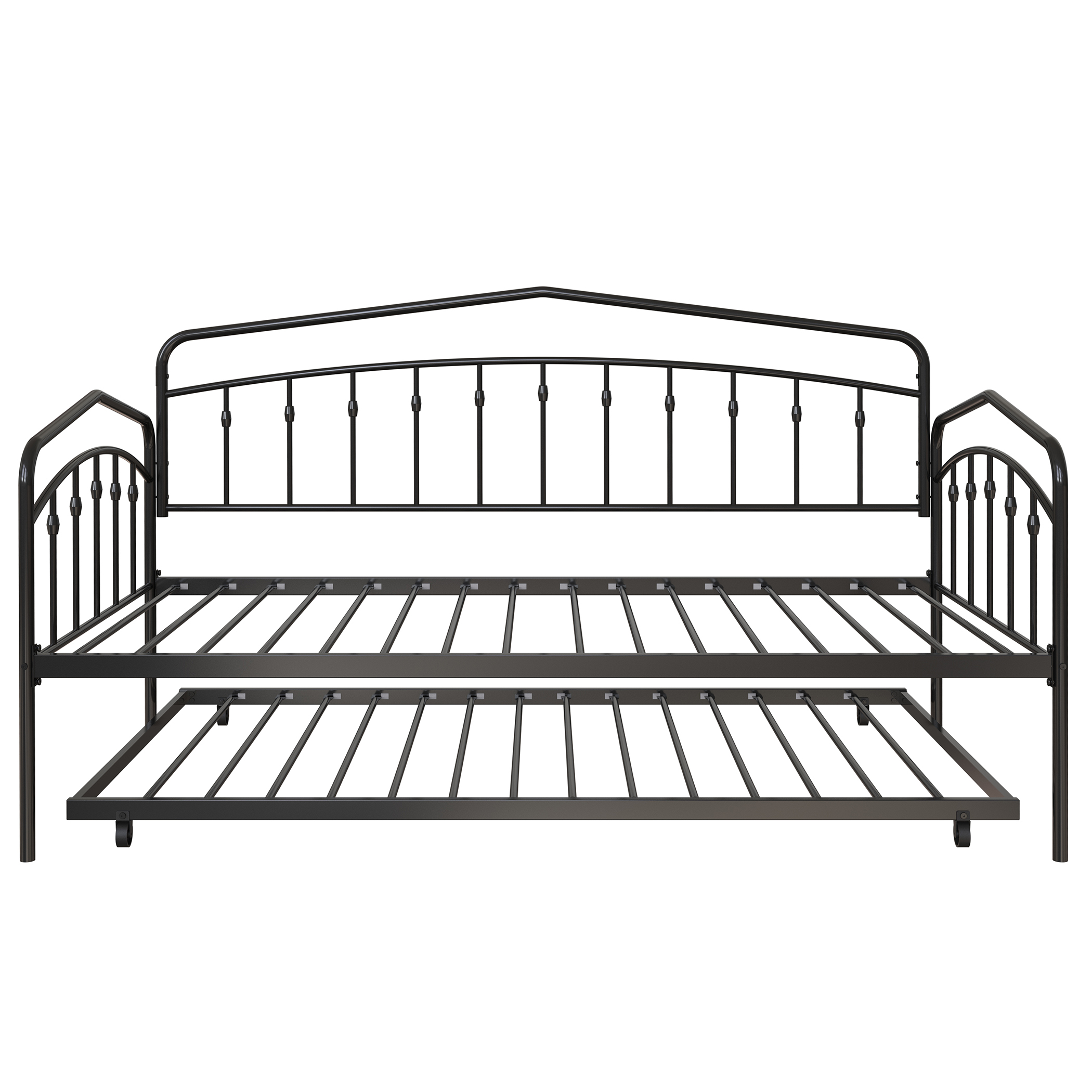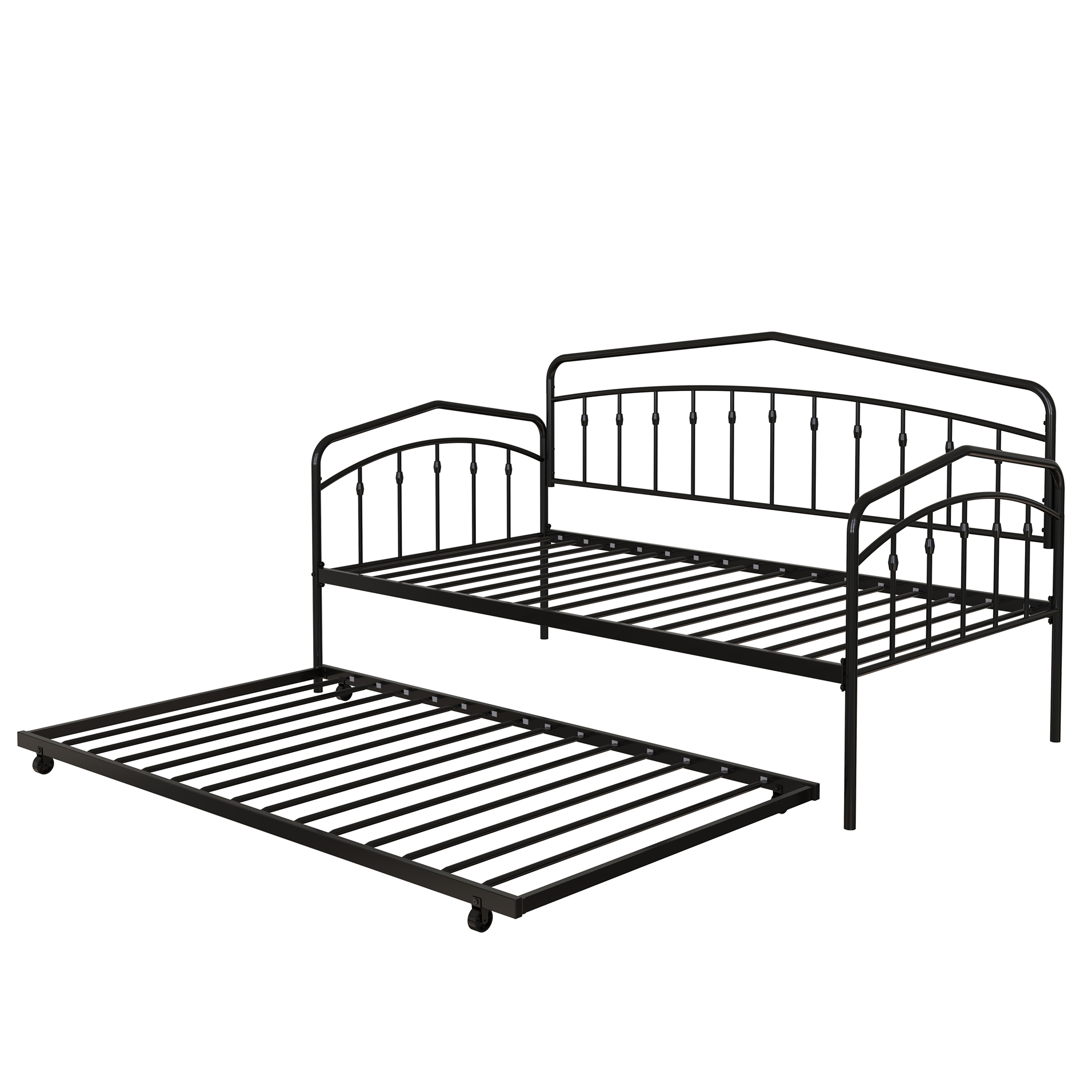 - [Durable Metal Frame]: Both the daybed and trundle feature secured metal slats for support and durability. Includes a trundle with four easy-glide casters (2 locking, 2 non-locking) that easily rolls in and out when you need an extra sleeping space.
