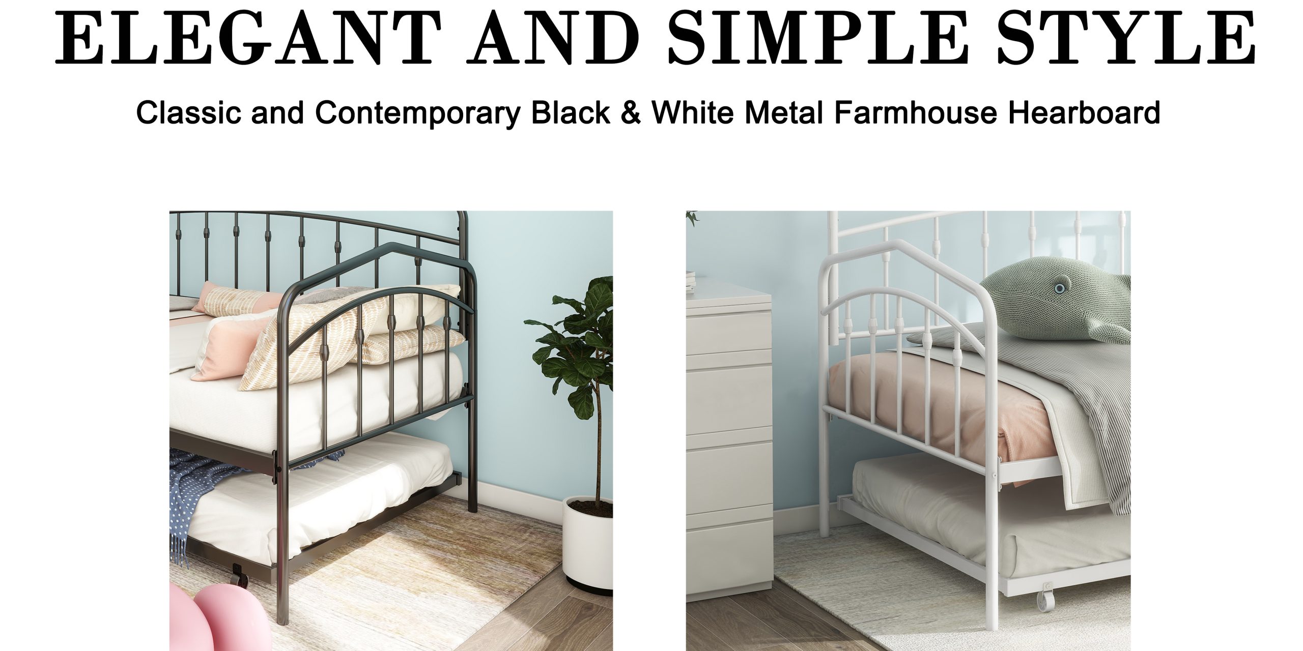 - [Elegant and Simple Style]: The design of the black/white iron art daybed in this children’s room is truly commendable. It exudes a sense of elegance and simplicity, blending seamlessly with the room’s overall decor.