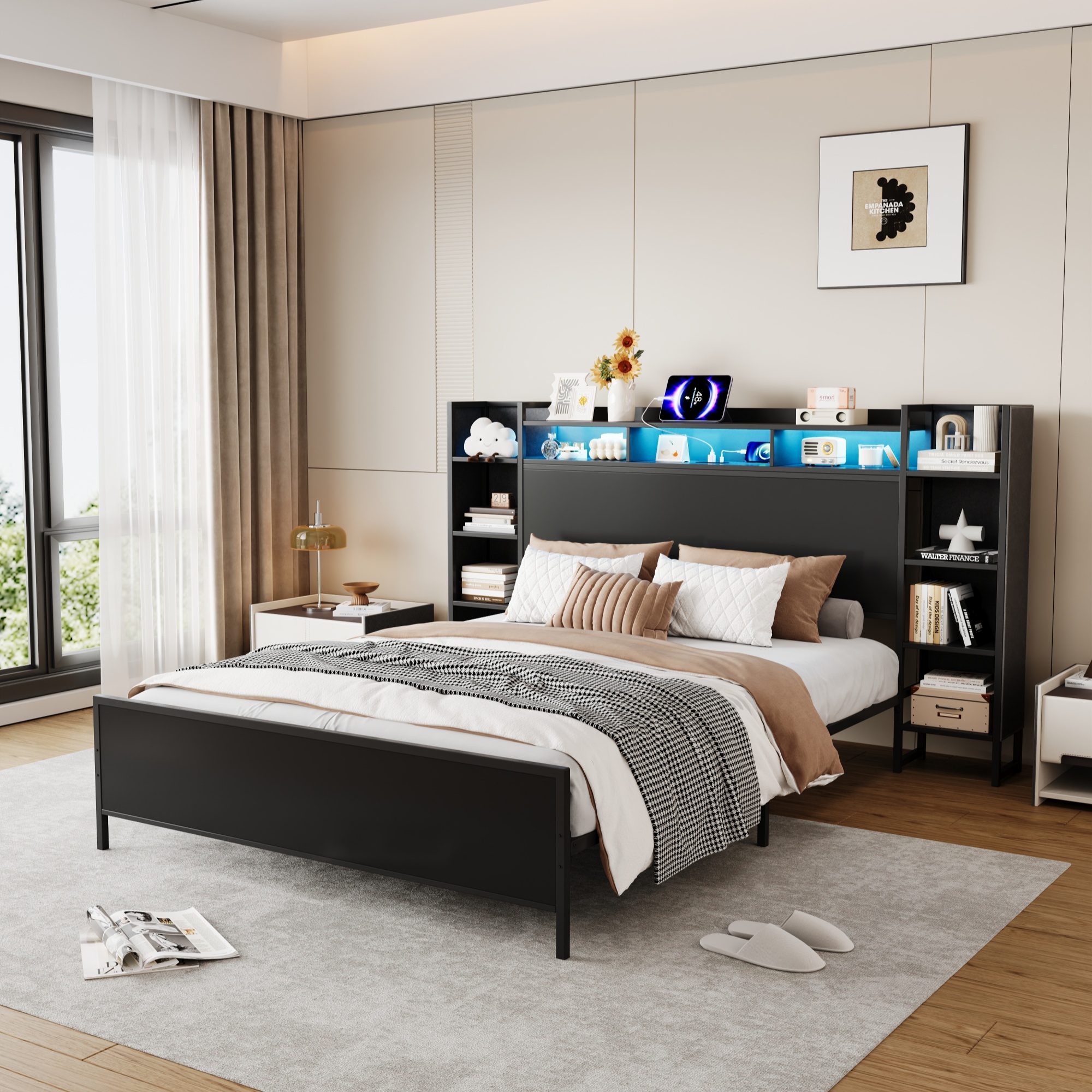 - Our bed frame led lights headboard with remote control and over 6000 colorful lighting options and rhythm mode LED lights, preventing foot bumps and creating ambiance,ensuring maximum comfort and convenience