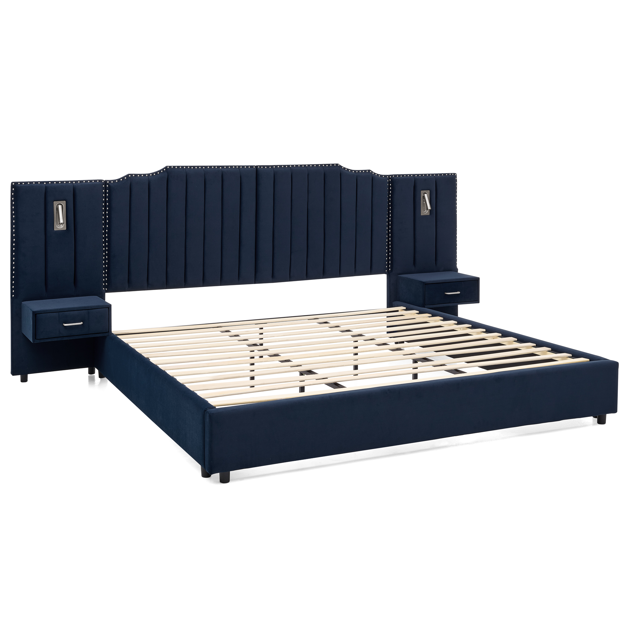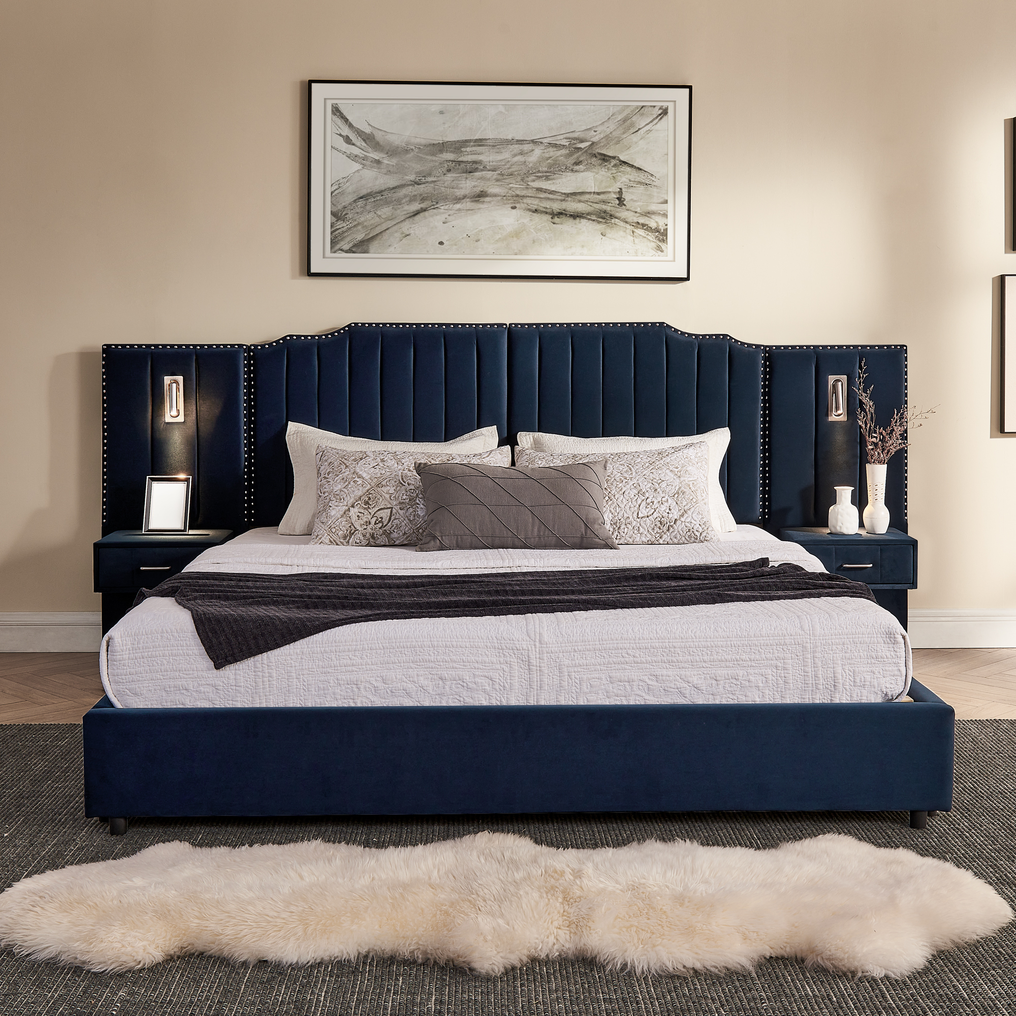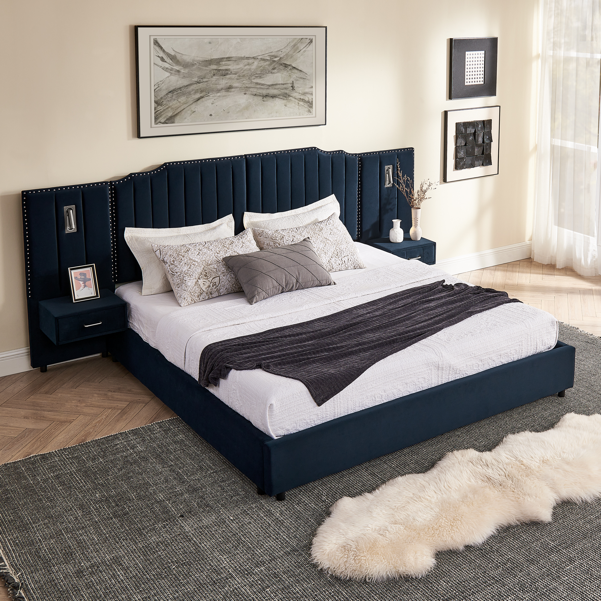- [Unique Design] -The enlarged and widened headboard not only enhances the visual grandeur but also provides more adequate support for the back when leaning against it, significantly increasing the comfort level. The integrated bedside table design ensures that the style of the bed and the bedside table is unified and the connection is natural, saving bedroom space and creating a unified and minimalist bedroom layout.