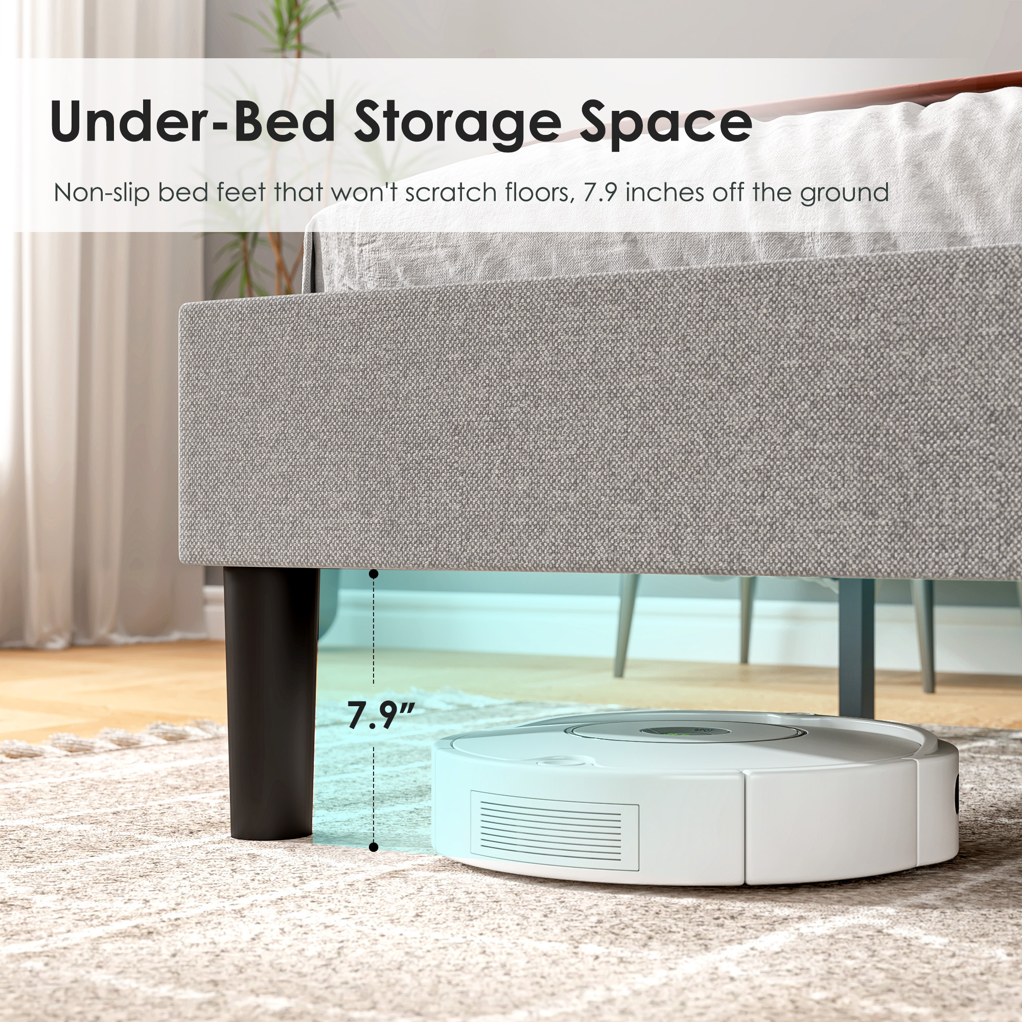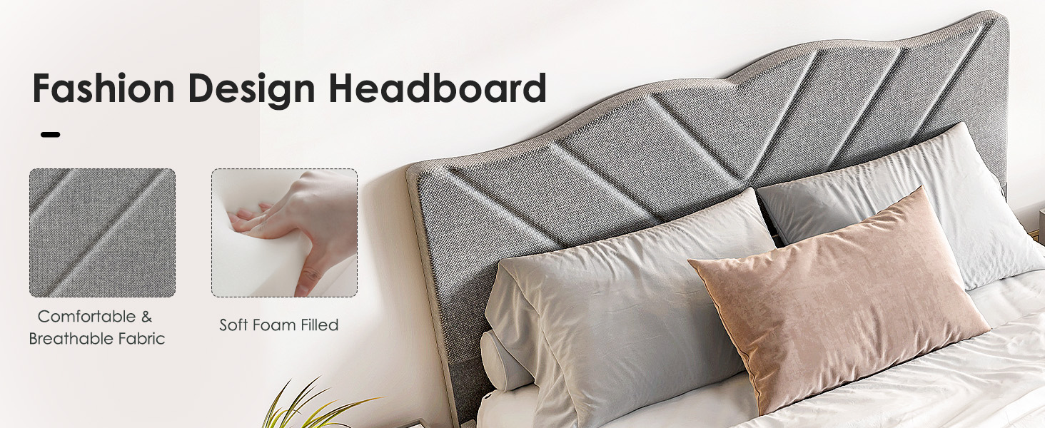 - Minimalist & Noise-Free: This queen-size bed frame features a sleek, padded upholstered headboard that complements a variety of decor styles. Equipped with EVA mute bars, it effectively eliminates friction noise, ensuring a completely silent and creak-free sleeping experience. Perfect for those who value both style and tranquility