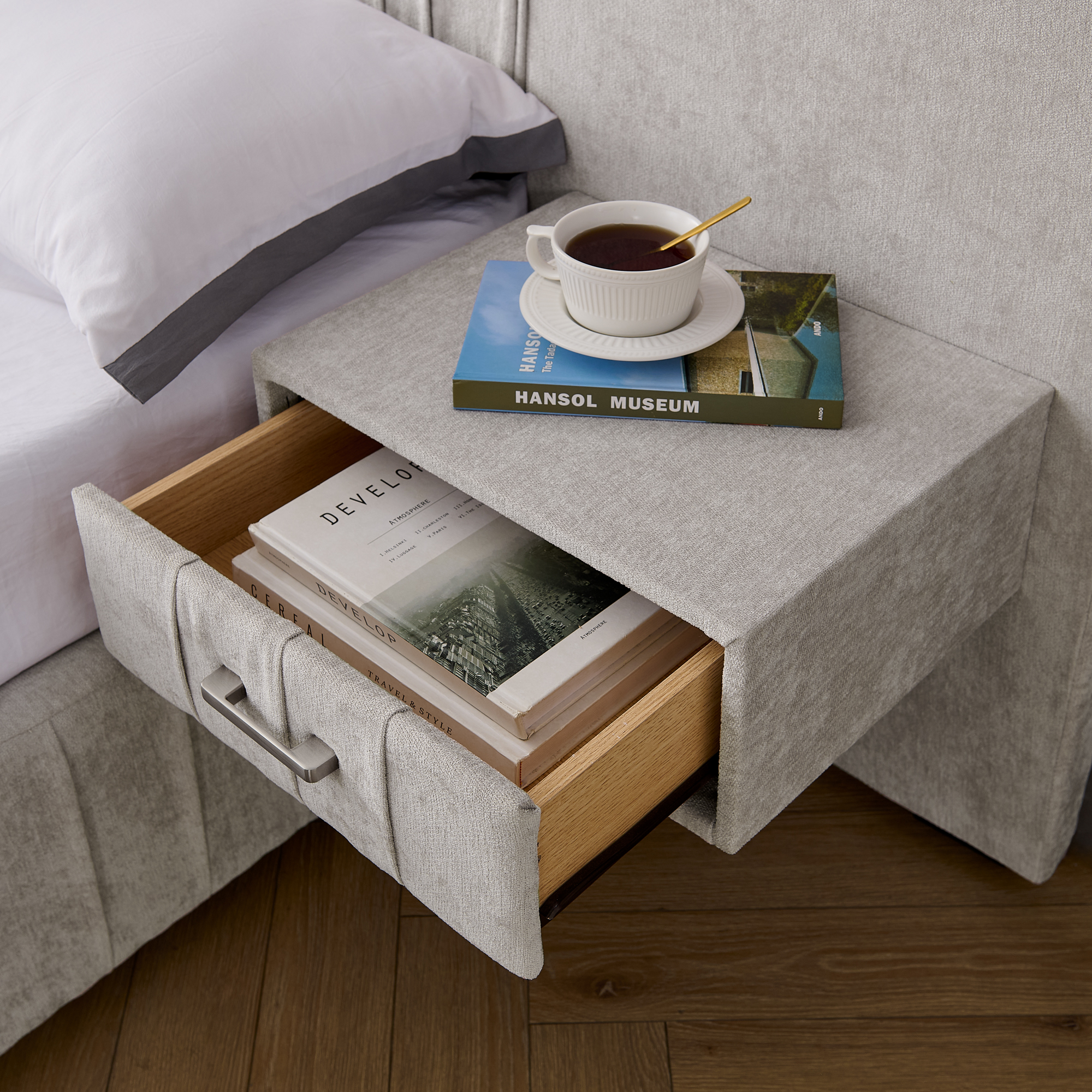- [Appearance design] Using manual – pleating technology, carefully crafted at the head, tail, and bedside, resembling undulating waves, making the bed instantly transform into an artistic installation in the bedroom. When light and shadow fall, the intertwined texture of light and shadow injects a retro and lazy atmosphere into the space, suitable for any style