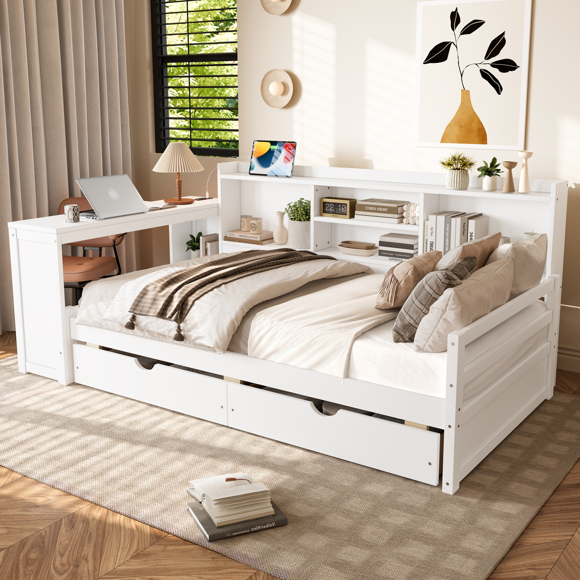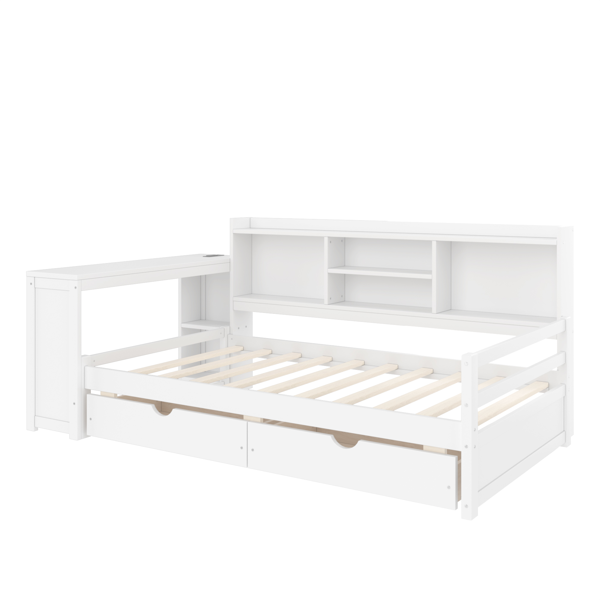 Twin Size Corner Daybed with Storage Drawers & Desk & Charging Port & Bookcase