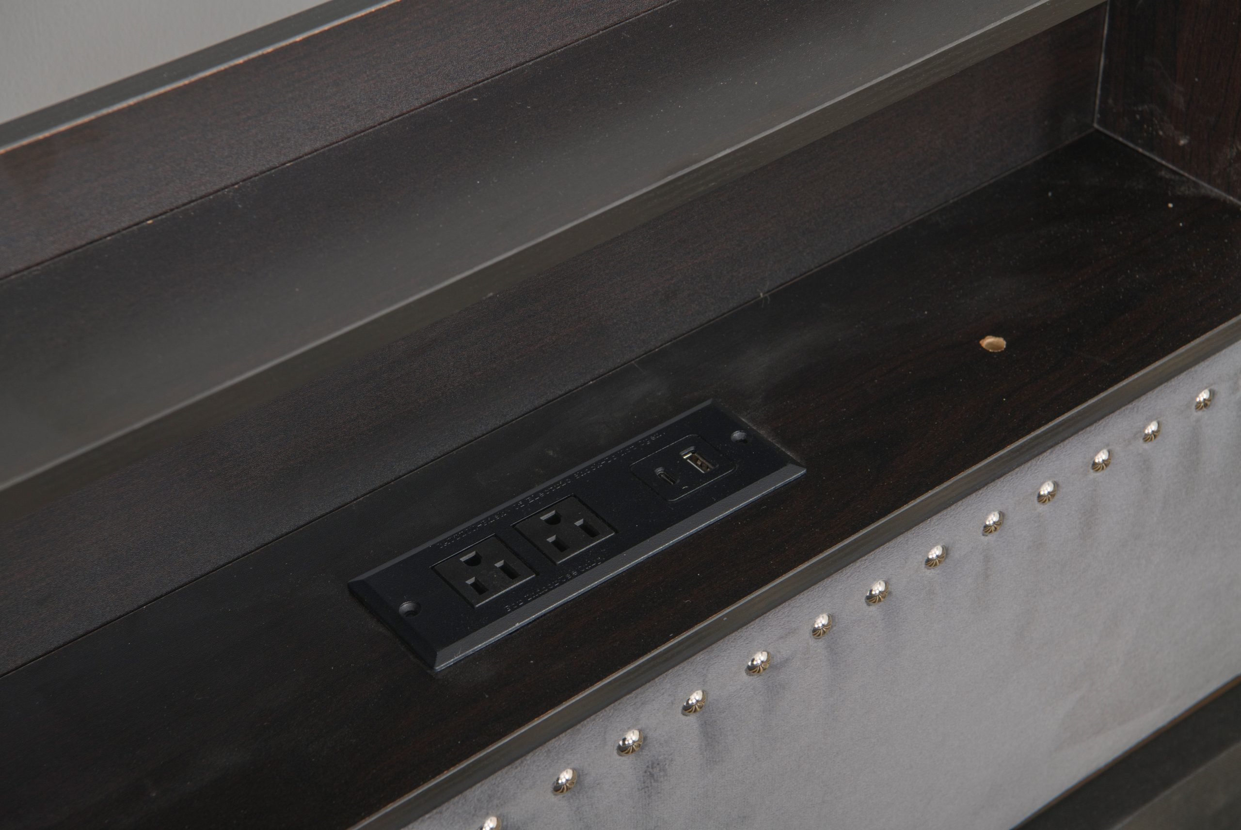 - The built-in power outlet with 2 USB ports and 2 sockets allows you to charge your electronic devices while you relax.